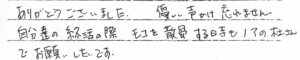 ありがとうございました。優しい声かけ忘れません。自分たちの終活の際 モコを散骨する時もノアの杜さんでお願いしたいです。 当社スタッフより