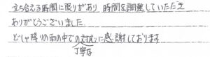 立ち会える時間に限りがあり時間を調整していただきありがとうございました。どしゃ降りの雨の中での丁寧な対応に感謝しております。