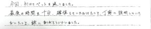 今回、初めてペットを送りました。最後の時間を十分、確保していただけたこと、丁寧に説明していただいたこと、誠にありがとうございました。 当社スタッフより