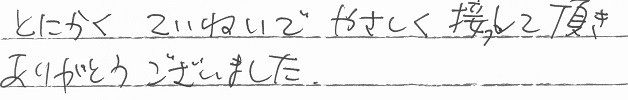 とにかく ていねいでやさしく接して頂きありがとうございました。