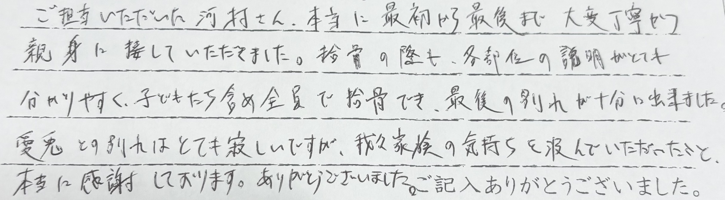 この度は心温まるお言葉をお寄せいただき、誠にありがとうございました。