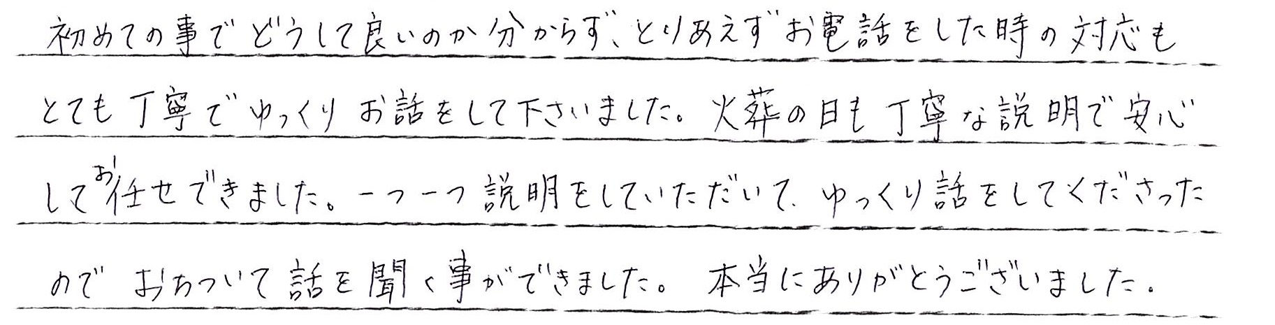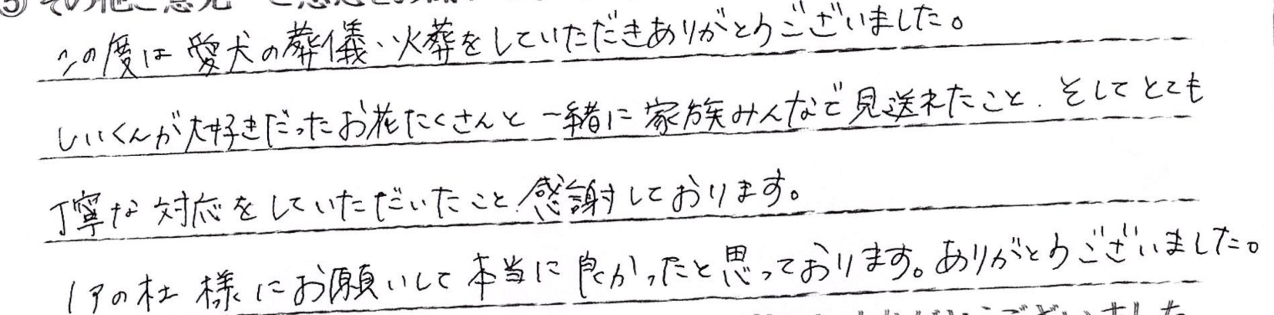みんとちゃんとの思い出話をたくさんお話してくださり、ご家族様のみんとちゃんへの愛情を強く感じました。