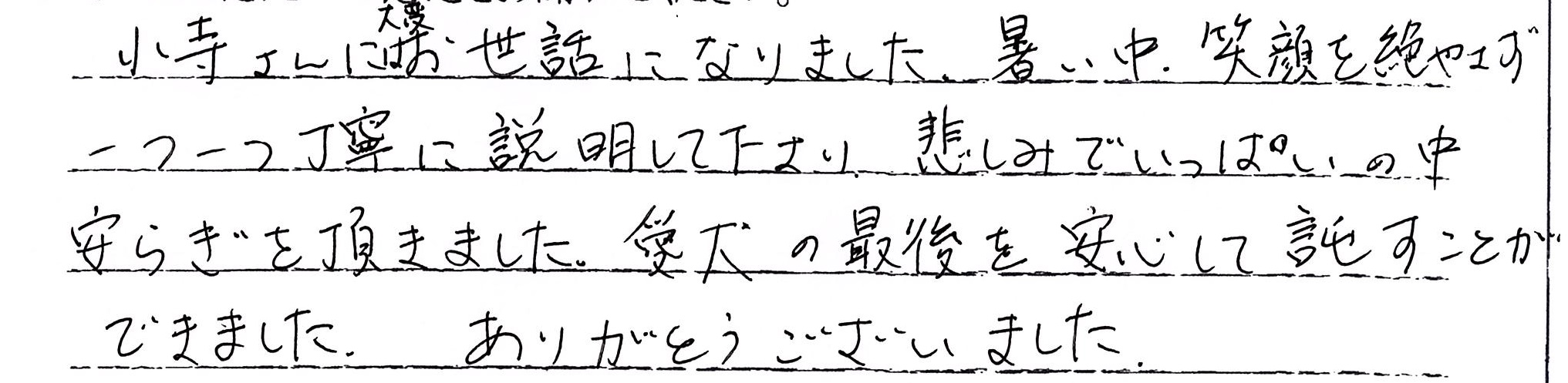 とても丁寧に執り行っていただき感謝しております。