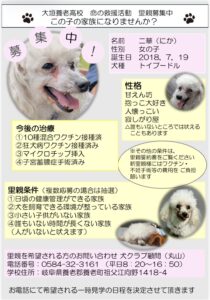 3月5『里親様募集』二華ちゃん🌷 家族を探しています🐾 この子の名前は 二華(にか)ちゃん。トイプードルの女の子です🎀 現在、大垣養老高等学校 犬クラブで 高校生の皆さんに大切にお世話されています✨ これまで学生さんたちが 愛情いっぱいに守ってきた命。 次は、この子を 本当の家族として迎えてくださる方を探しています。 もし気になる方がいましたら 画像の連絡先までお問い合わせくださいね🌷 二華ちゃんに あたたかいご縁がつながりますように🐾 ノアの杜